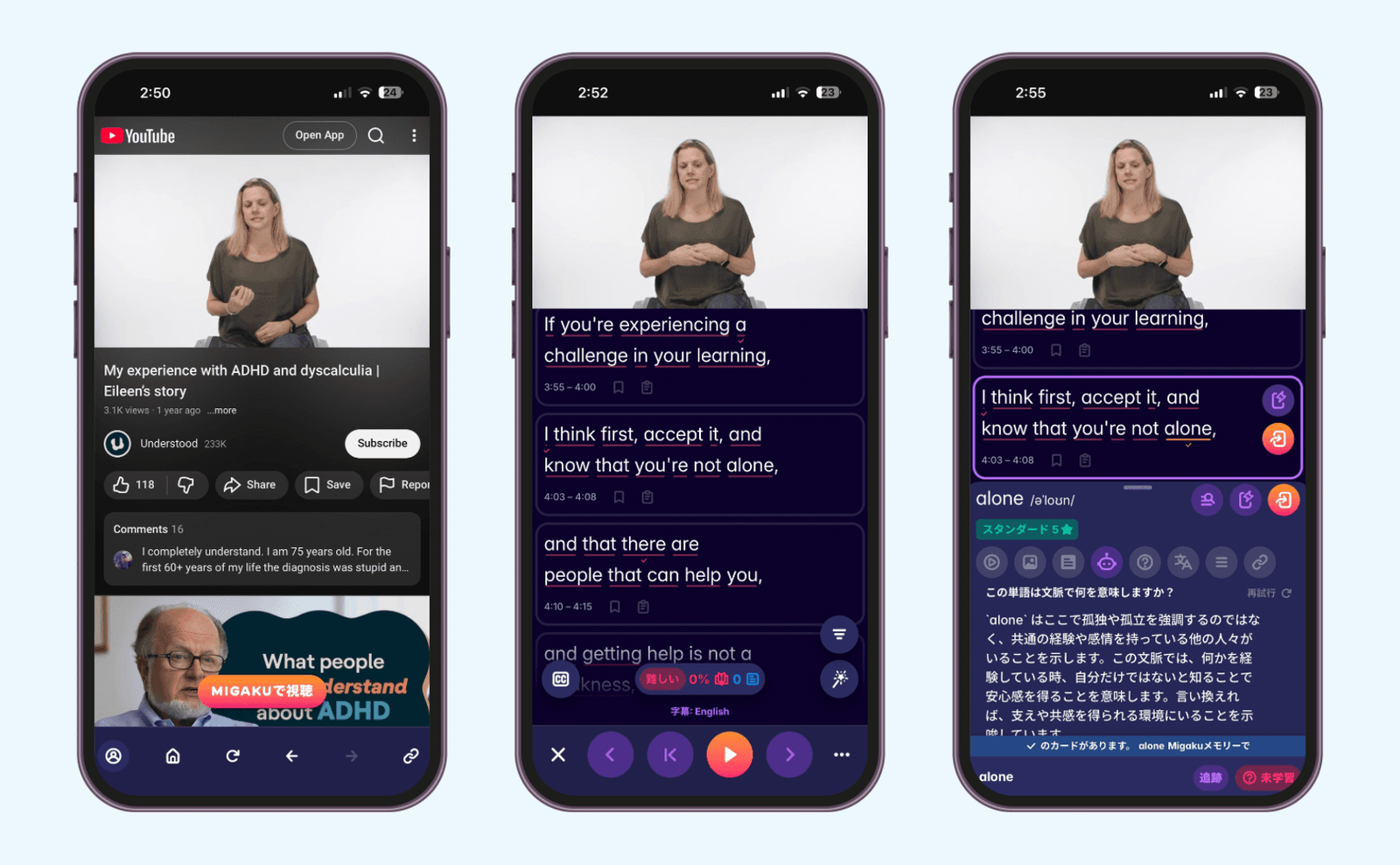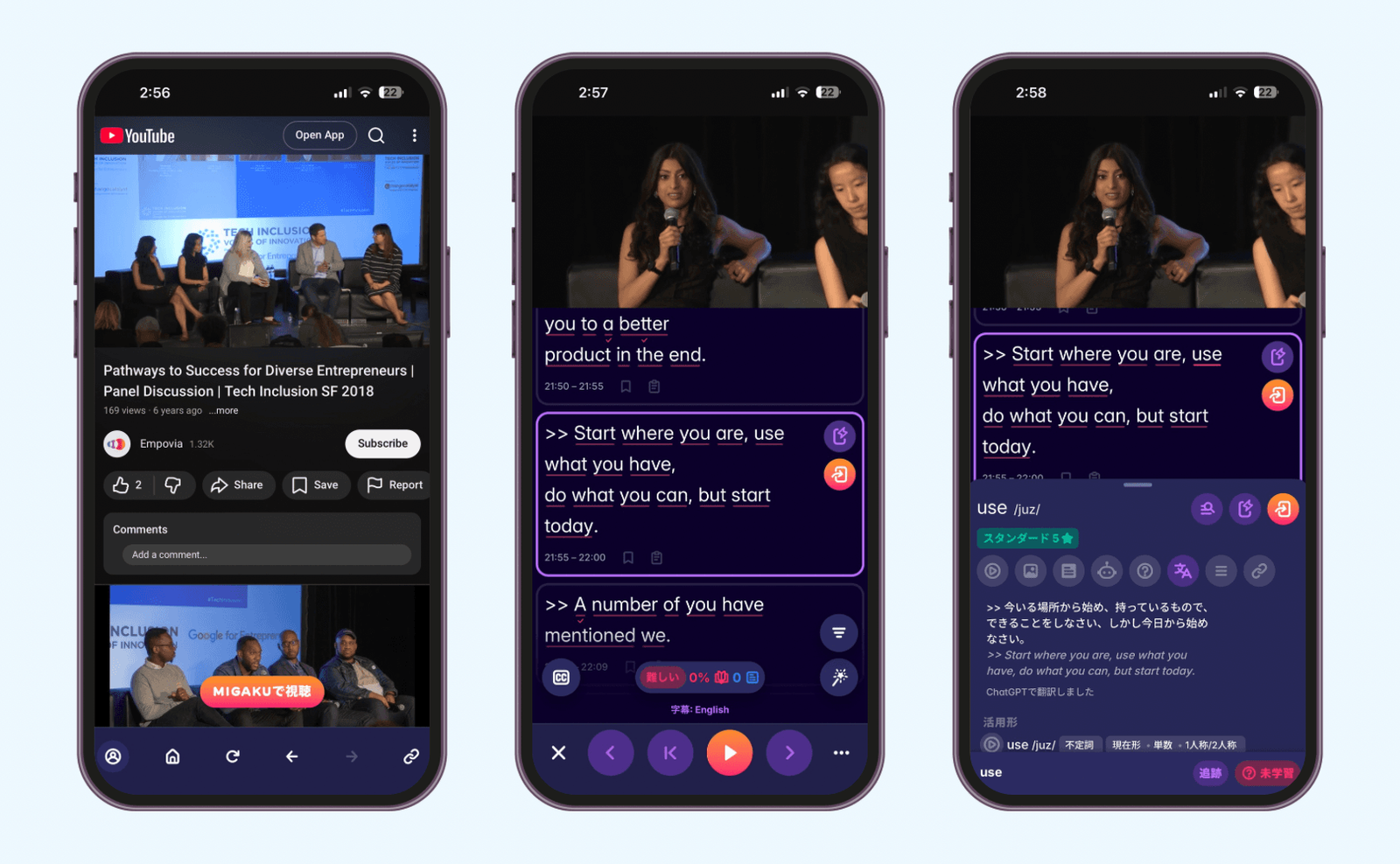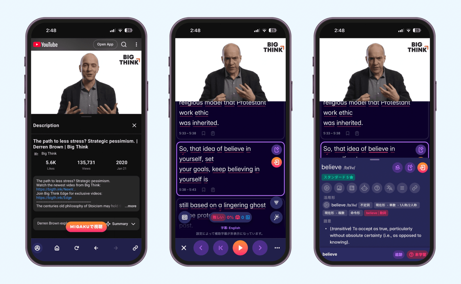 そんなとき、Migakuの字幕拡張機能を使えば…