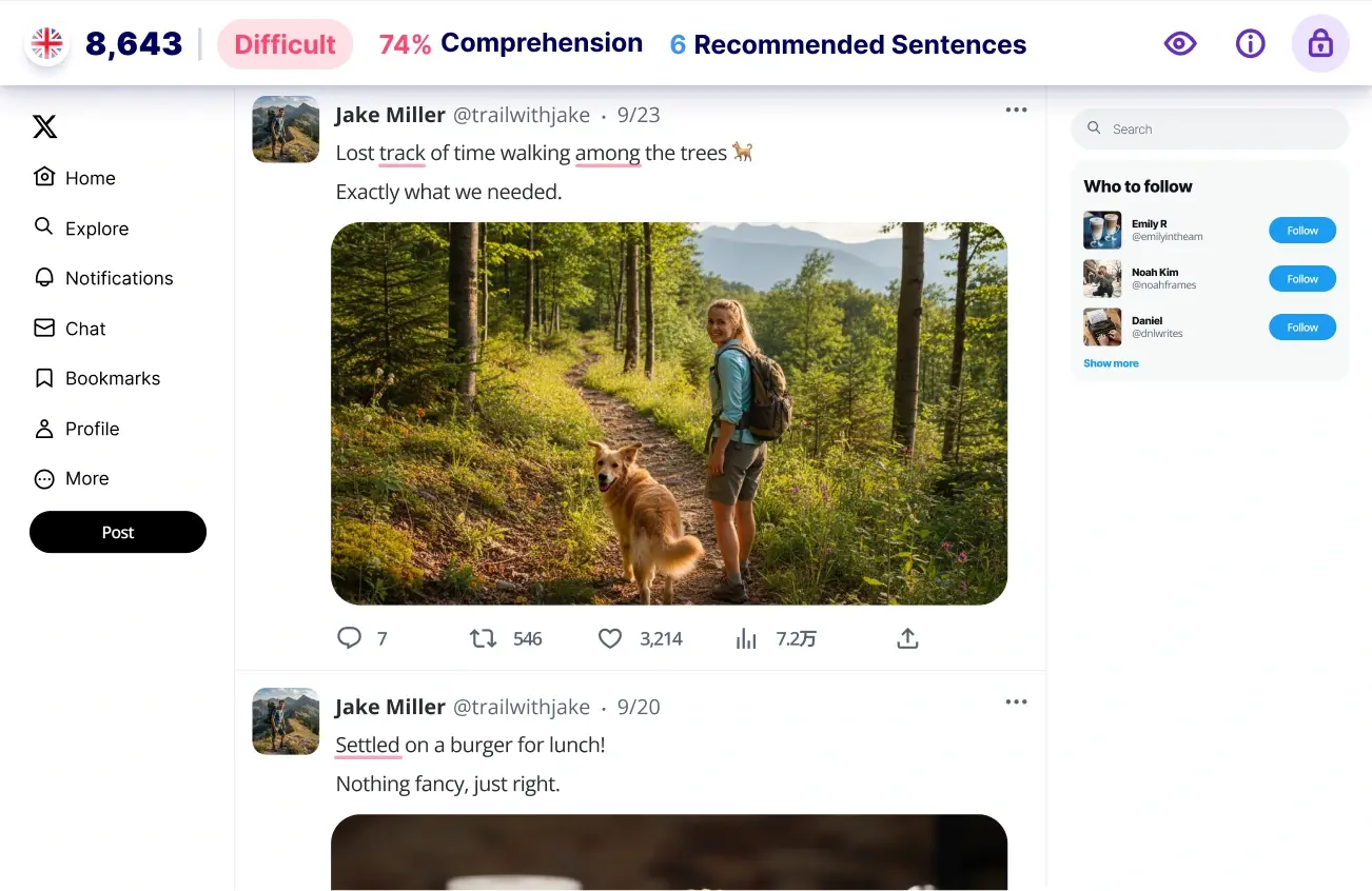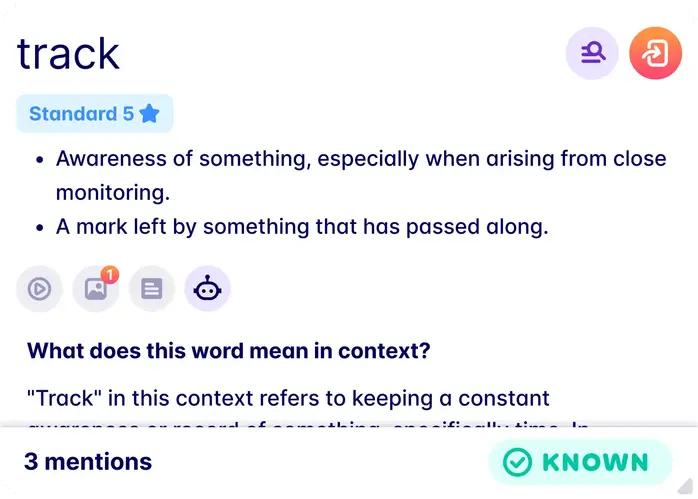 This information is used to calculate a personalized comprehension score for every piece of English content you interact with, assigning them an approximate difficulty level. This visual progress tracking provides tangible evidence of your English learning journey and ensures you learn with media that's suitable for your level.