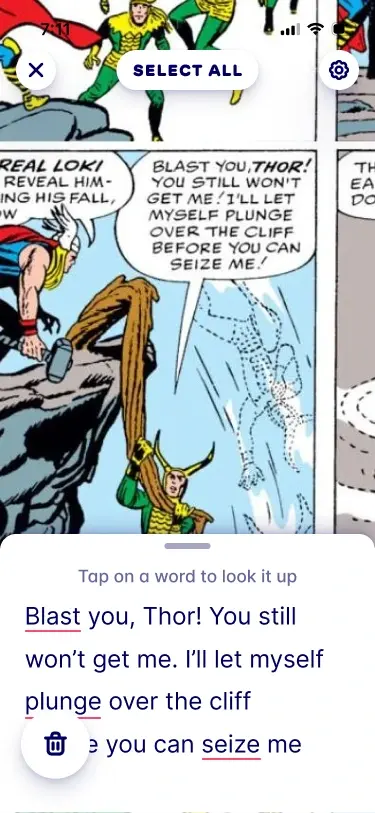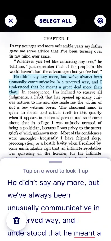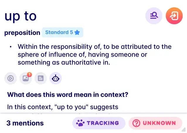 Look up → When you encounter words you don't know, click on them to see what they mean or have the sentence broken down by AI