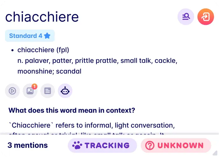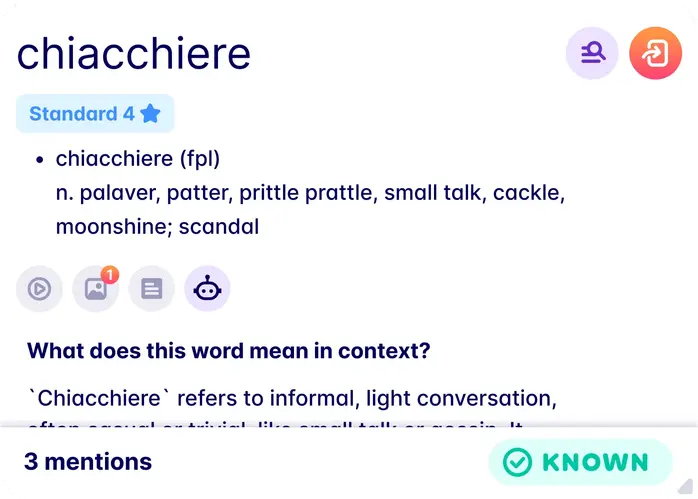 Basically, Migaku is a comprehensive language-learning toolbox. With instant word lookups, AI breakdowns of tricky sentences, and one-click flashcard creation, you can start enjoying (and learning from) native Italian media way sooner than usual. More importantly, when you learn Italian by interacting with newspapers, shows, and content you actually care about, vocabulary and grammar stick better.