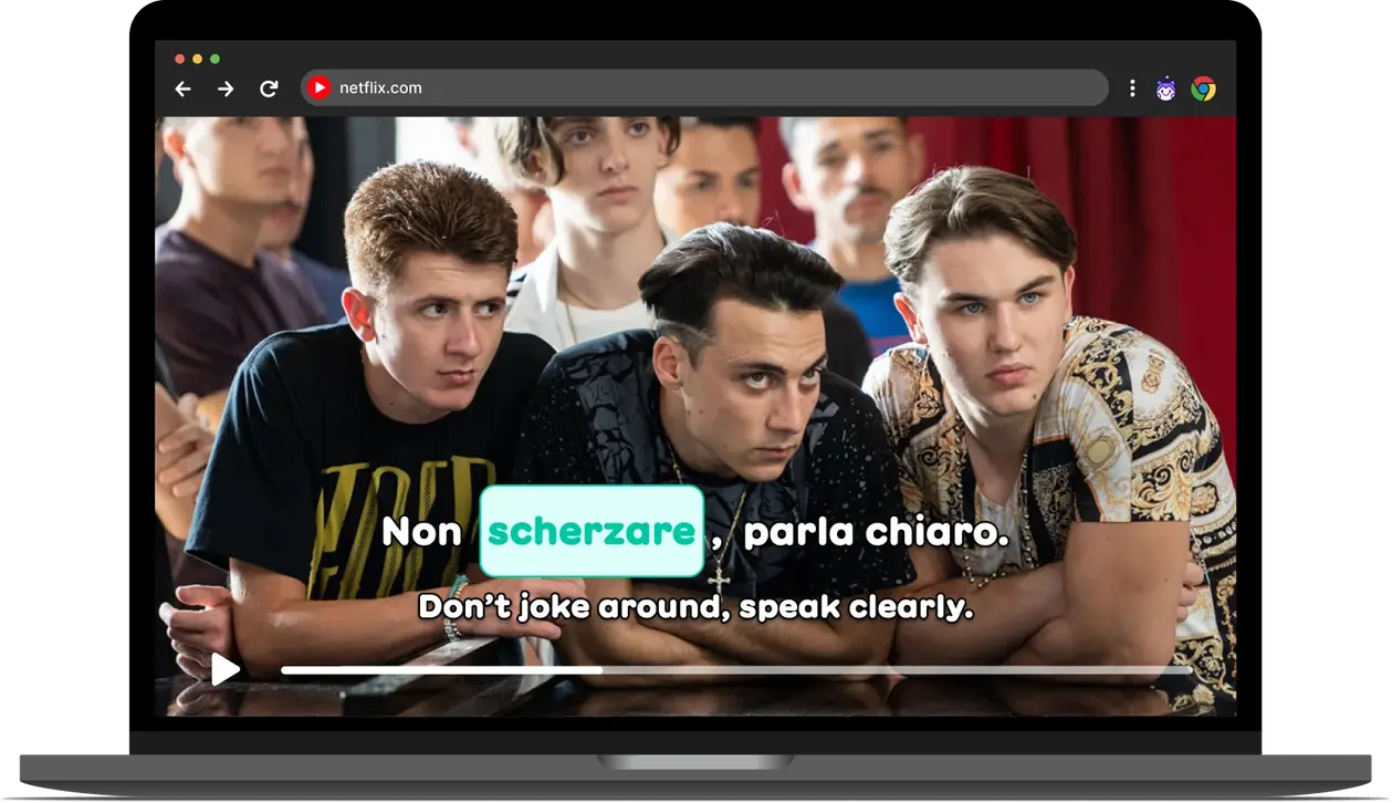 Whether you’re a beginner or nearly fluent, Migaku’s interactive subtitles help you learn Italian naturally by enjoying the content you love.