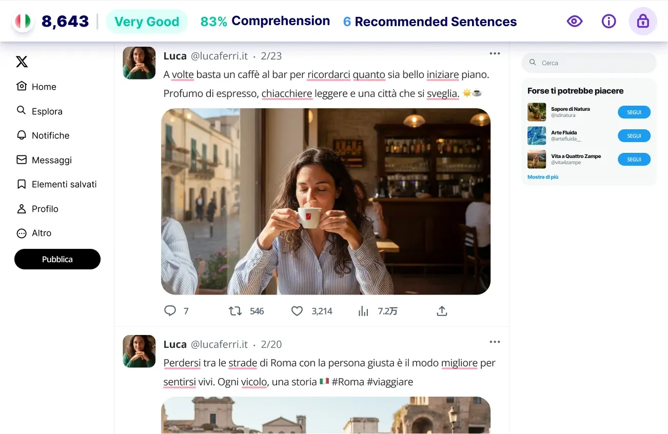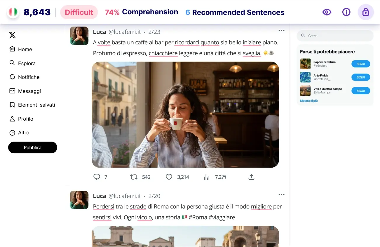 Traditional apps give you textbook exercises. Migaku lets you learn Italian by engaging directly with Italian media you're actually interested in.