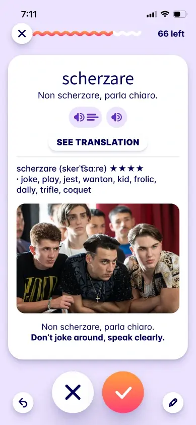 From there, our spaced repetition algorithm designs a personalized learning schedule to help you master Italian efficiently.