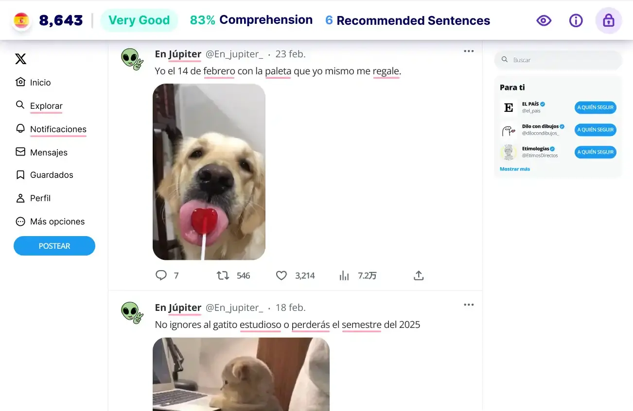 Migaku makes it easy to turn daily encounters into opportunities to expand your Spanish skills.