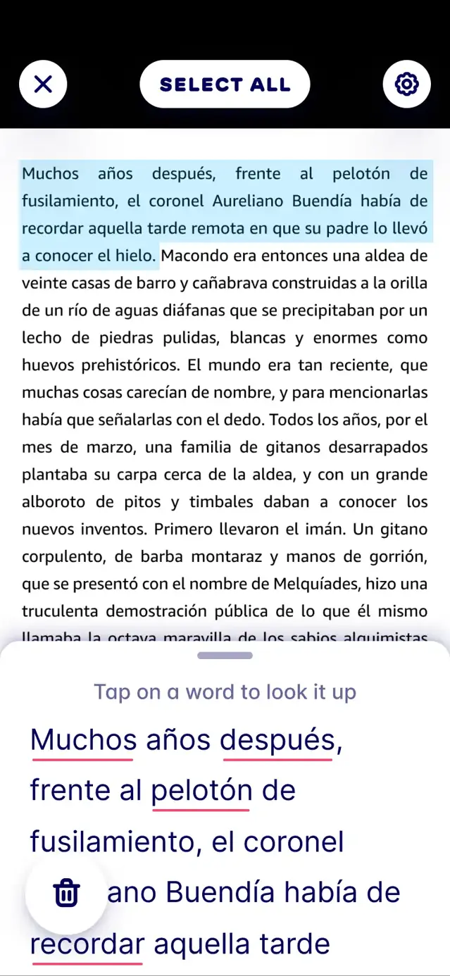 - Look up → When you encounter words you don’t know, click on words to see what they mean or have the sentence they appear in broken down by AI